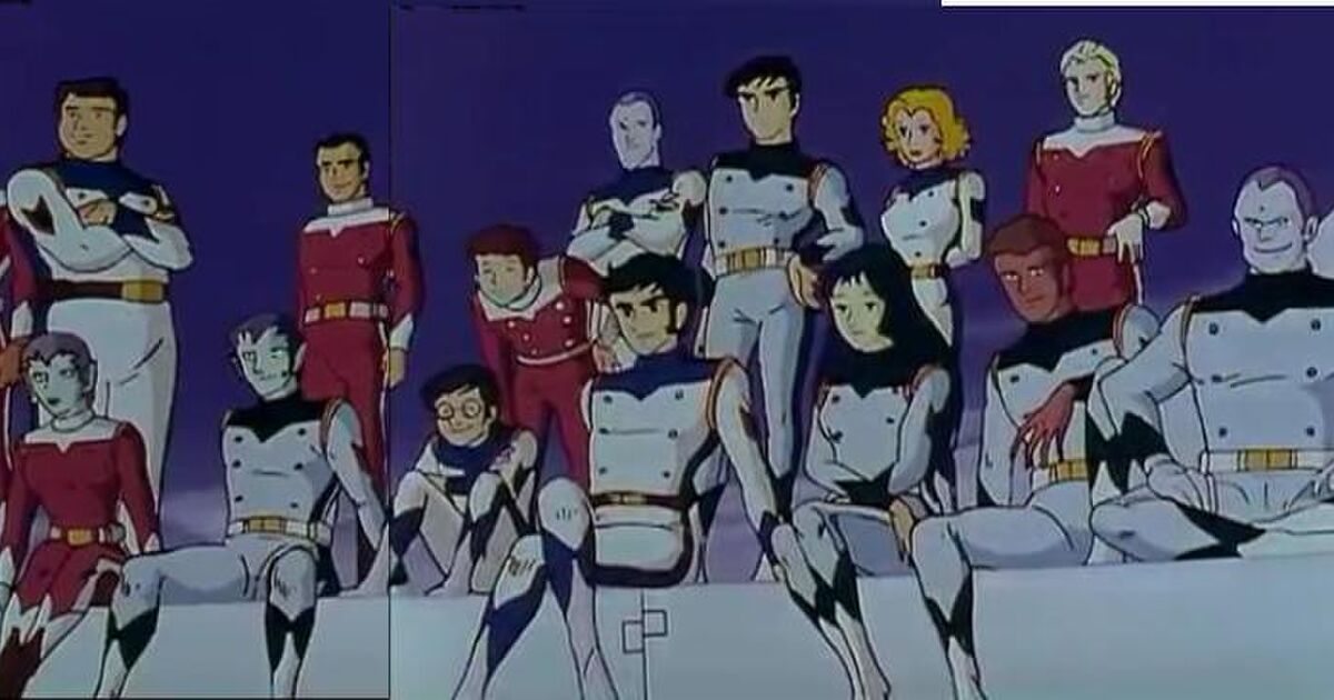 Sauf que. Ce groupe est cosmopolite, comme dans Star Trek. Si (evidemment...) les Japonais sont les plus nombreux, on trouve egalement des Americains, dont deux Noirs (et un Russe mais du cote du commandement de la flotte), et quelques extra-terrestres de Mira et Sara. Et tout le monde vit en harmonie totale, sans aucun decalage culturel... Dans Star Trek, un des interets de Monsieur Spock, c'est que justement il etait culturellement different, et cette opposition vis-a-vis du reste de l'Enterprise donnait tout son sel a la serie. La, JAMAIS, a aucun moment, il n'y aura la moindre difference marquee, ni la moindre tension, entre deux groupes ou meme deux individus... D'ailleurs, meme sous forme de court flashback, jamais on ne saura comment ni dans quelles circonstances les Terriens sont entres en contact avec les peuples sus-cites. Aucune info non plus sur l'origine de la creation du robot.